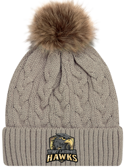 AJM Faux Fur Pom Toque with Embroidered Hawks Logo